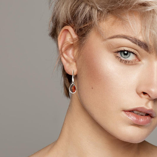 Pendant d'oreilles Argent Ambre Rhodié