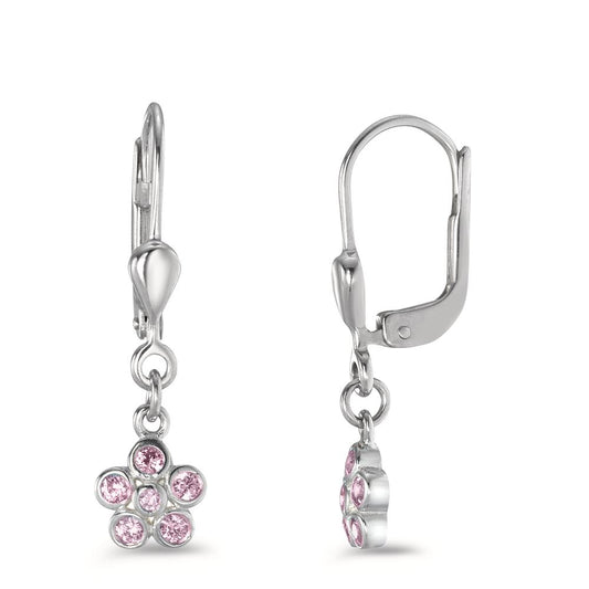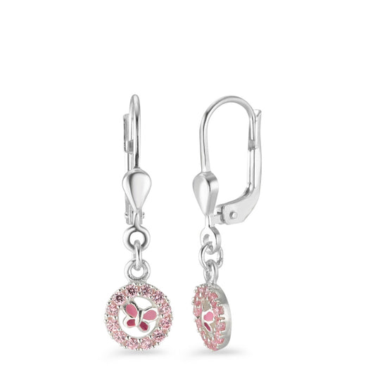 Pendant d'oreilles Argent Zircone rose, 28 Pierres Papillon