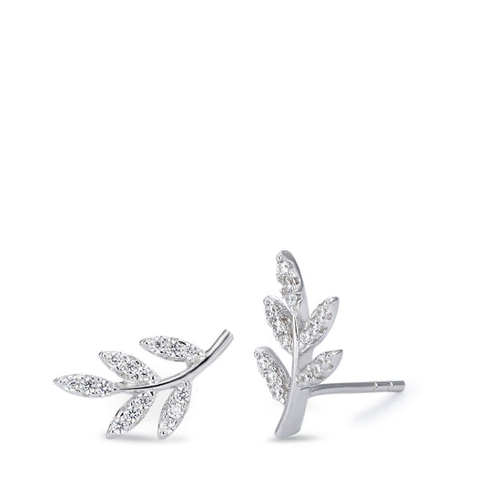 Clous d'oreilles Argent Zircone Rhodié Feuille