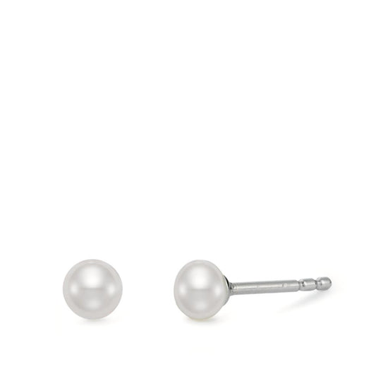Clous d'oreilles Argent Rhodié perle d'eau douce blanc, 2 Perles 3-4 mm