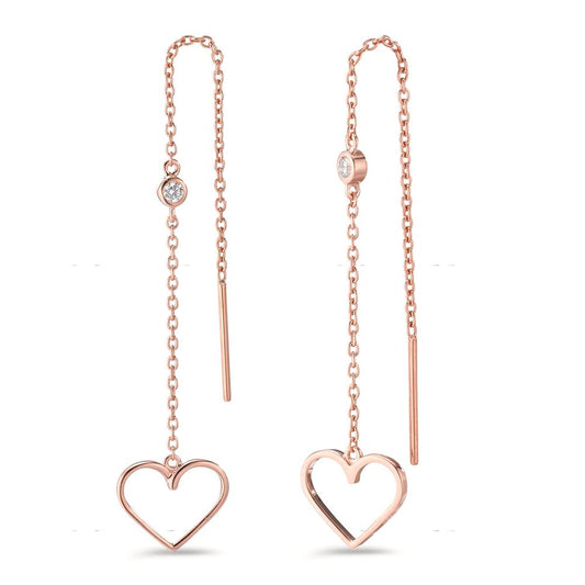 Boucles d'oreilles pendantes Argent Zircone 2 Pierres rosé Plaqué or Coeur