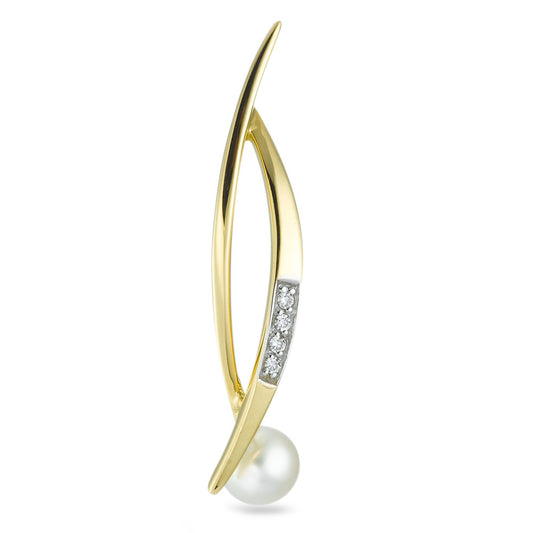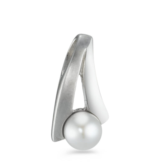 Pendentif Or blanc 18K Diamant 0.015 ct, w-si perle d'eau douce blanc, 6 mm