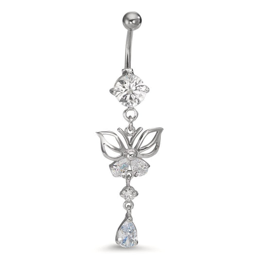 Piercing nombril Acier inoxydable Zircone 5 Pierres Papillon