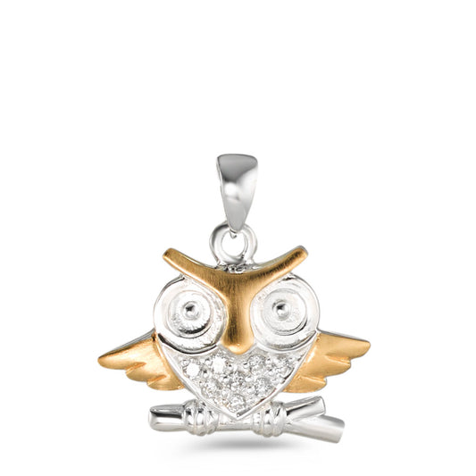 Pendentif Argent Zircone jaune Bicolore Hibou