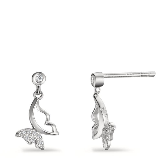 Pendant d'oreilles Argent Zircone 16 Pierres Rhodié Papillon