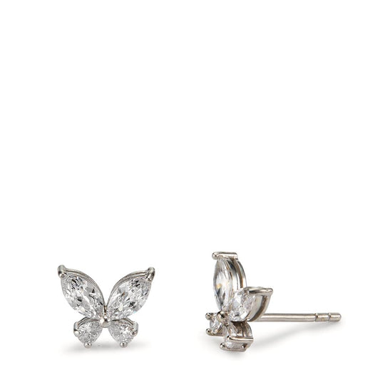 Clous d'oreilles Argent Zircone 8 Pierres Rhodié Papillon Ø8 mm