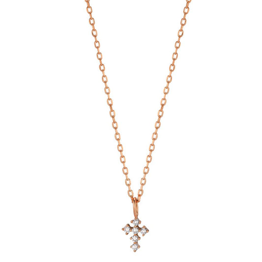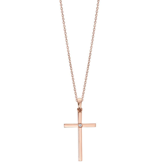 Collier 750/18 K Rotgold Diamant 0.01 ct, w-si Kreuz 40-42 cm verstellbar