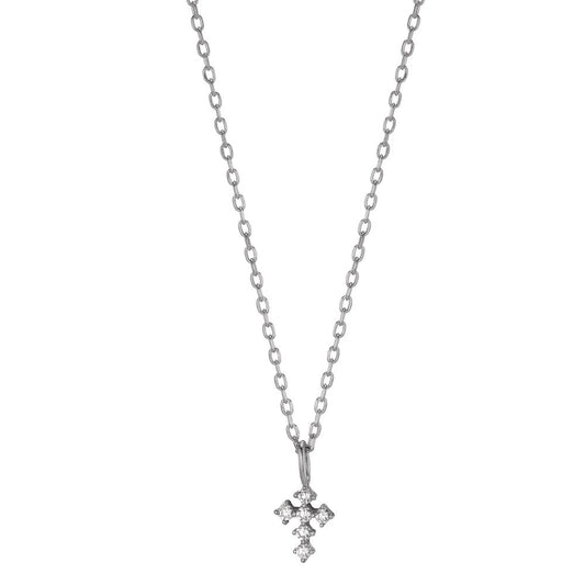 Collier Silber Zirkonia 6 Steine rhodiniert Kreuz 40-45 cm verstellbar