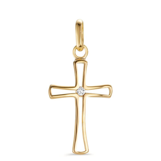 Anhänger 375/9 K Gelbgold Zirkonia Kreuz Ø14 mm