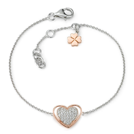Armband Silber Zirkonia 20 Steine rosé vergoldet Herz 15-18.5 cm verstellbar Ø10 mm