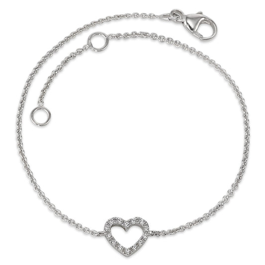 Armband Silber Zirkonia 12 Steine rhodiniert Herz verstellbar