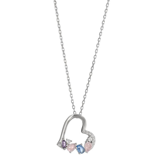 Collier Silber Zirkonia bunt rhodiniert Herz 40-45 cm verstellbar