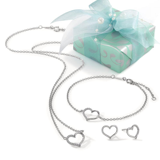 Edles Herz-Geschenkset aus Silber: Halskette, Ohrstecker & Armband