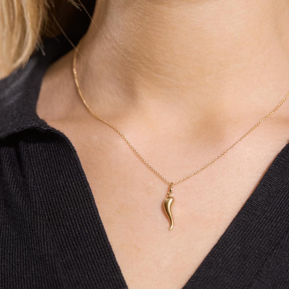 Der Cornicello Glücksanhänger aus 18 Karat Gelbgold steht seit Jahrhunderten für Glück, Schutz und positive Energie – ein Symbol, das Stärke und Lebensfreude ausdrückt. Mit seiner weich geschwungenen Form und dem warmen Glanz des Goldes vereint er Tradition und modernen Stil. Ein Schmuckstück für alle, die das Leben feiern und sich selbst etwas Bedeutungsvolles und Beständiges schenken möchten – als täglicher Begleiter und persönliches Statement für Zuversicht und Eleganz.