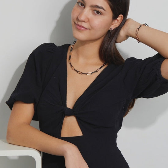 Stilvolles Damenarmband aus robustem Edelstahl mit eleganten Carbon-Elementen. Die Kombination aus roségoldfarbenen und schwarzen Gliedern verleiht dem Schmuckstück einen modernen und einzigartigen Look. Perfekt für jeden Anlass und Ihr tägliches Outfit.