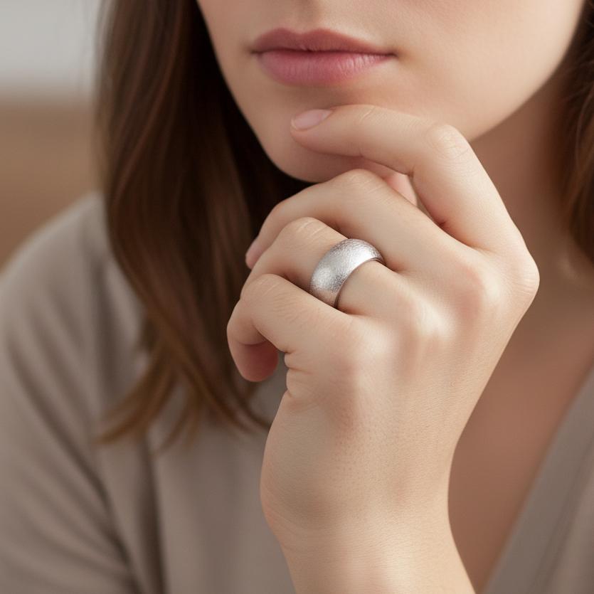 Moderner Fingerring aus hochwertigem Edelstahl mit einer matt gebürsteten Oberfläche für einen einzigartigen Look. Der breite Ring besticht durch sein zeitloses Design und sorgt für ein robustes, gleichzeitig elegantes Accessoire, das zu jedem Outfit passt. Pflegeleicht und langlebig.