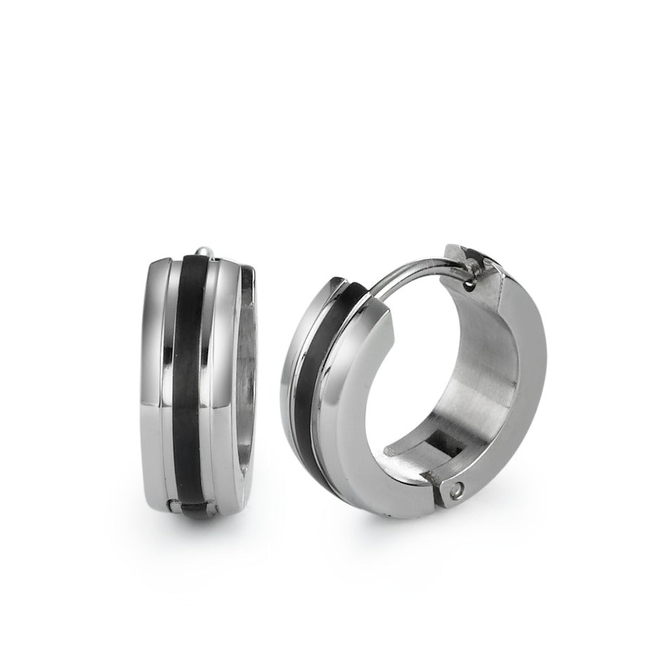 Elegante Damen Klappcreolen aus hochwertigem Edelstahl mit dezenter schwarzer Einlage. Zeitloses Design, das sich vielseitig kombinieren lässt. Besonders leicht und hautfreundlich – ideal für den täglichen Gebrauch oder besondere Anlässe. Modern und formschön.