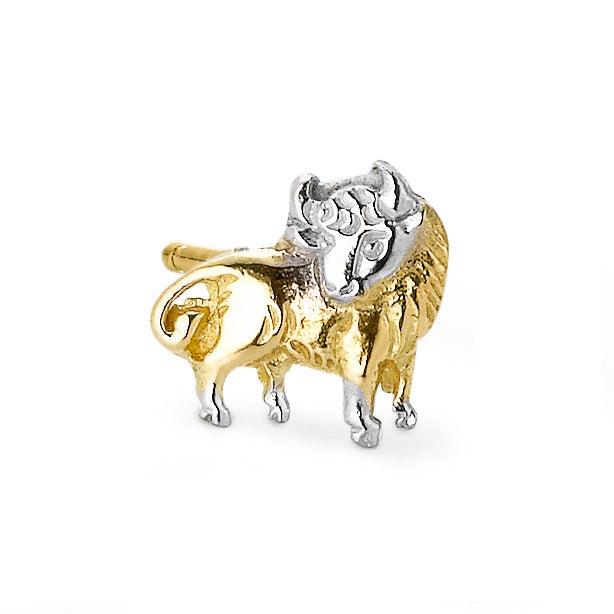 Dieser einzigartige Ohrstecker aus 750er Gelbgold zeigt detailreich ein stilisiertes Löwenmotiv. Ein edles Schmuckstück, das durch seine Kombination aus warmem Gelbgold und feinen silbernen Akzenten besticht. Perfekt für individuelle Akzente im Alltag oder besondere Anlässe.