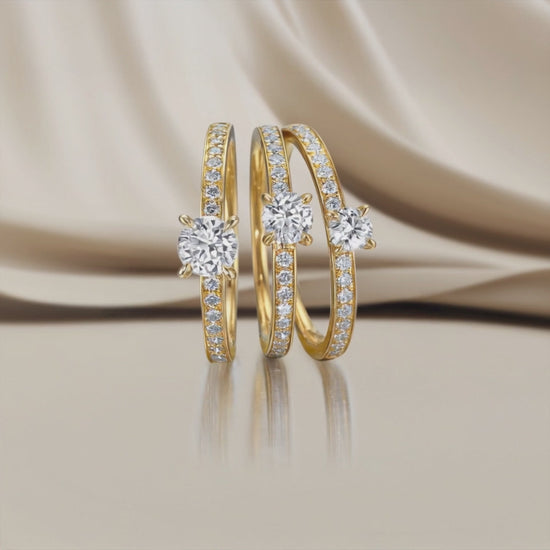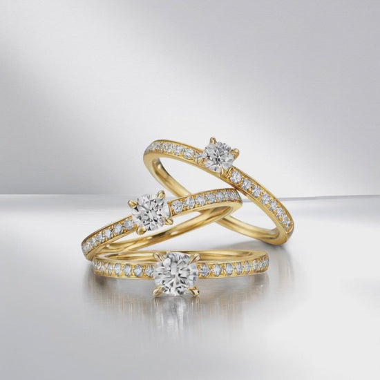 Eleganter Damen Solitär-Ring aus hochwertigem 750 Gelbgold, veredelt mit funkelnden Diamanten. Der zentrale Brillant wird von seitlichen Diamanten entlang des Rings ergänzt und sorgt für zeitlose Schönheit und luxuriösen Glanz bei jedem Anlass.