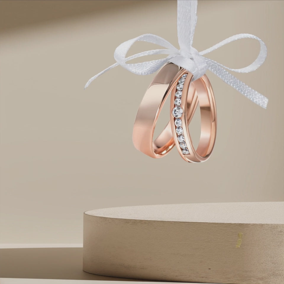 Bague de couple pour femme en or rouge 750, ornée de diamants étincelants. Un design élégant et raffiné, parfait pour symboliser l'amour et l'engagement. Cette bague allie qualité et beauté pour un cadeau inoubliable.