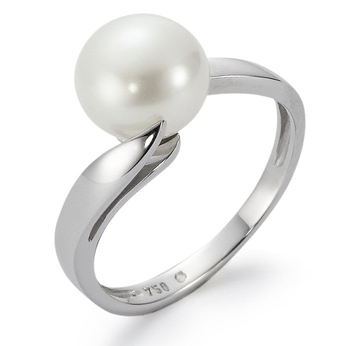 Bague Or blanc 18K perle d'eau douce, 8.5 mm