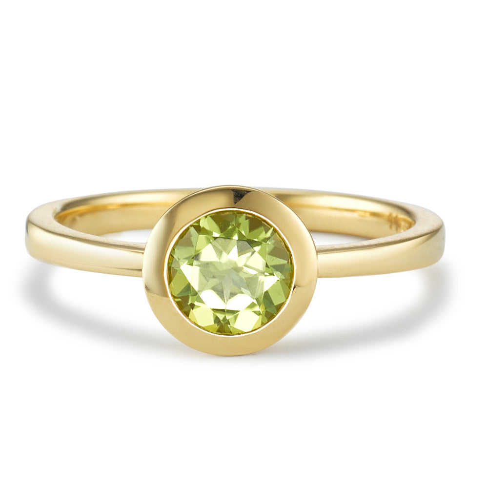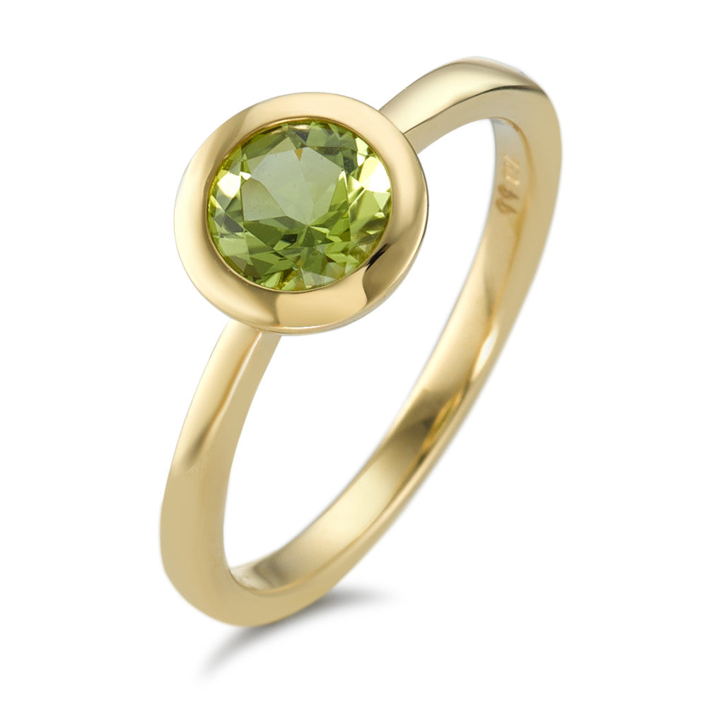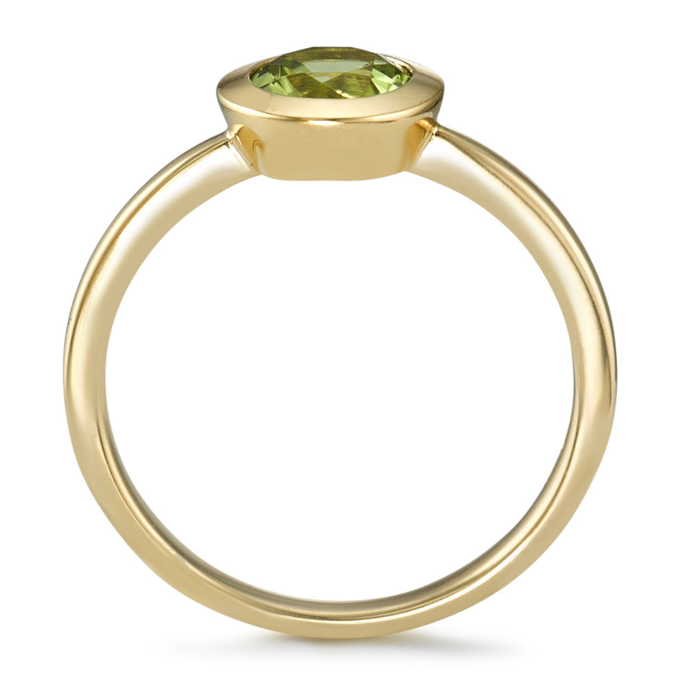 Bague élégante pour femme en or jaune 750/1000, sertie d'un péridot rond éclatant. Ce bijou raffiné allie sophistication et fraîcheur grâce à sa pierre précieuse verte lumineuse. Parfait pour sublimer toutes vos tenues avec une touche de couleur et d'élégance naturelle.