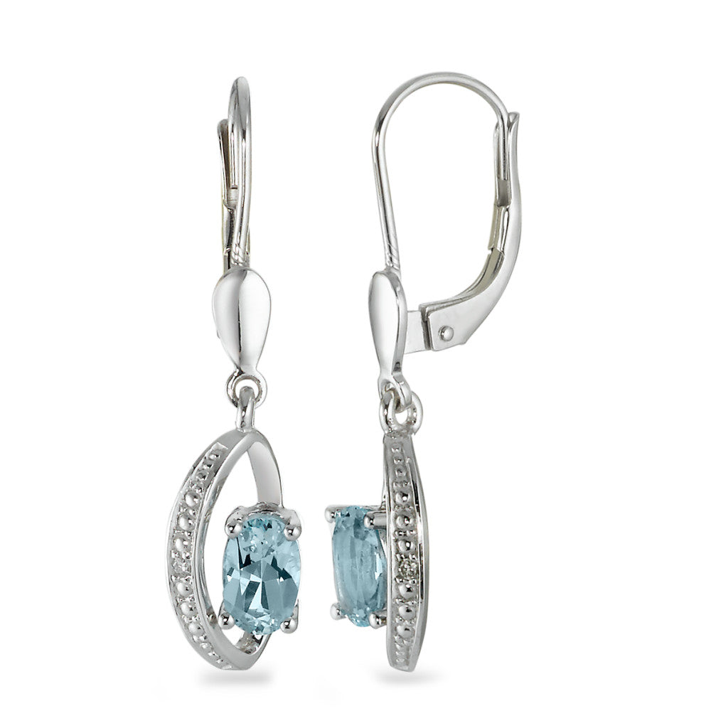 Pendantes pour femme en or blanc 750, ornées d'un diamant et d'une pierre bleue délicate. Élégance et raffinement se mêlent pour sublimer chaque tenue. Un bijou précieux idéal pour toutes les occasions. Qualité et design exquis garantis.