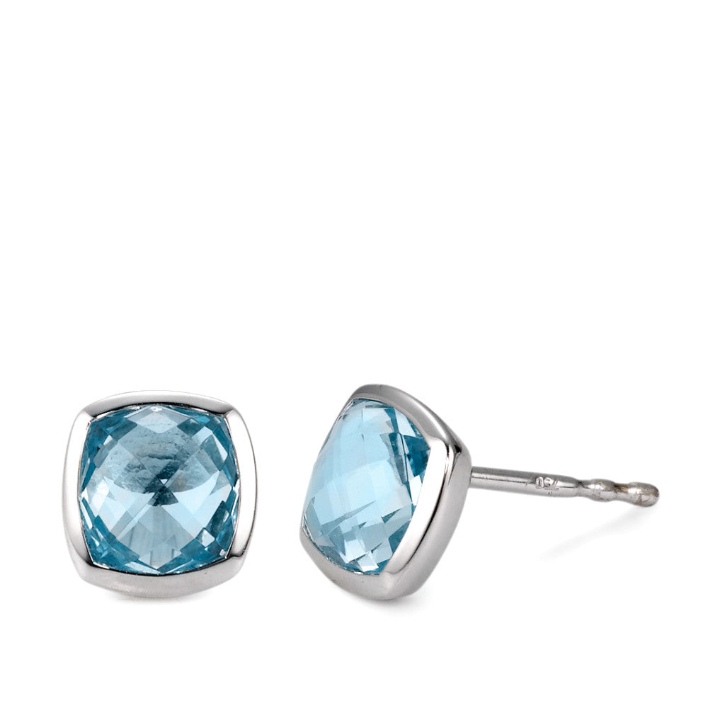 Clous d'oreilles Or blanc 18K Topaze bleu, 2 Pierres Ø7 mm