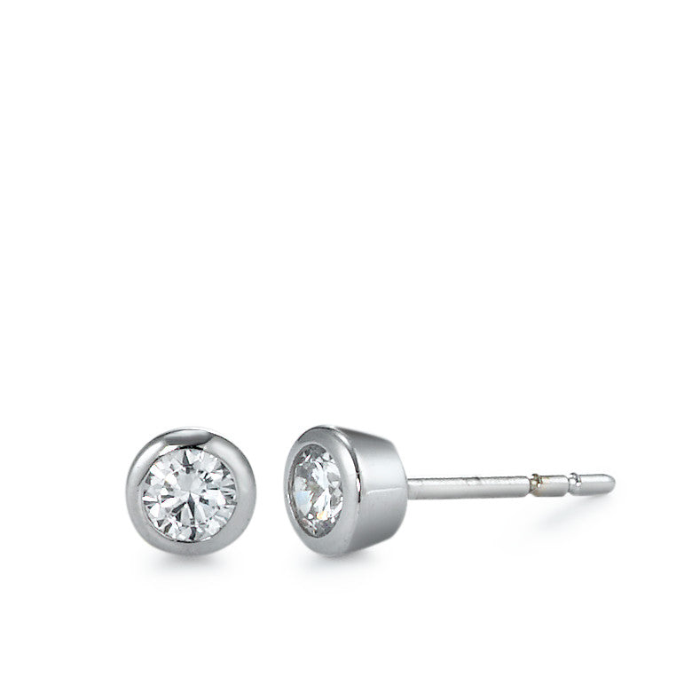 Clous d'oreilles Or blanc 18K Zircone 2 Pierres