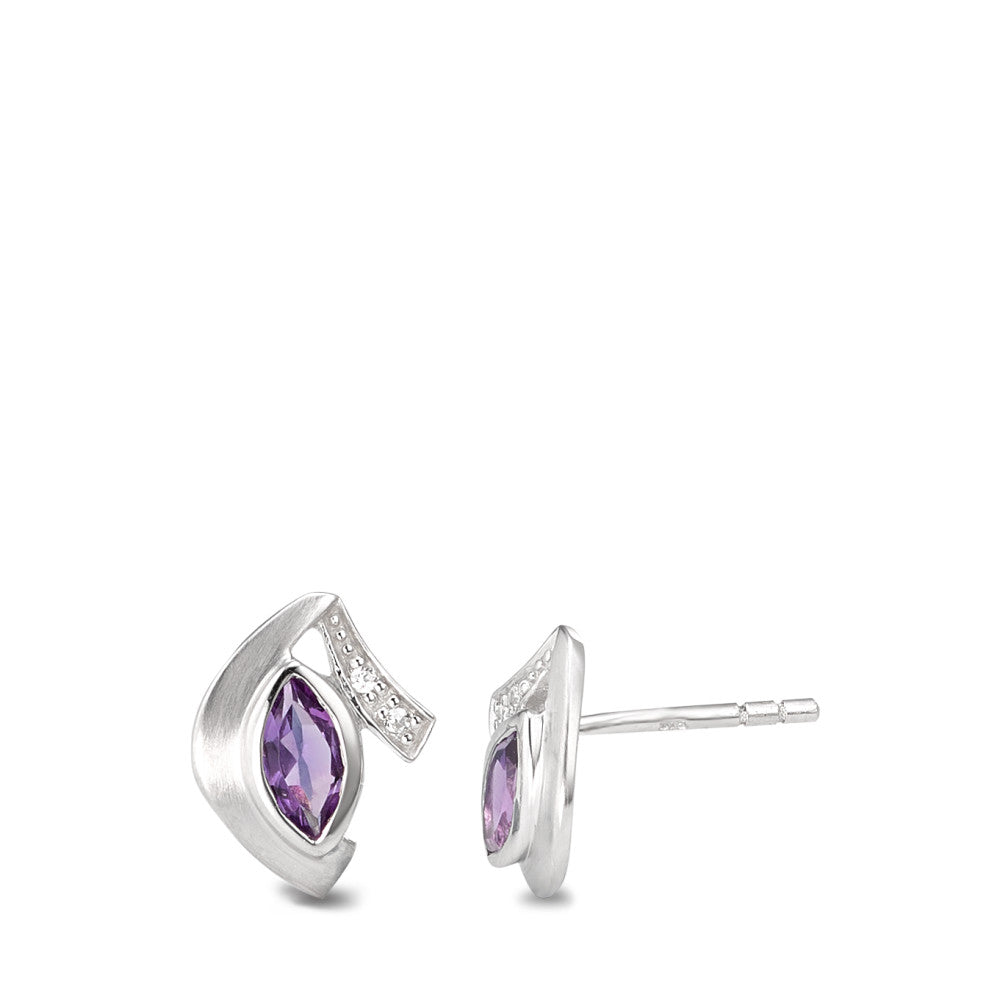 Boucles d'oreilles en or blanc 375 pour femmes, ornées d'améthystes élégantes. Ces clous d'oreilles sophistiqués associent la délicatesse de l'or blanc à la profondeur violette de l'améthyste, ajoutant une touche de raffinement à votre tenue quotidienne ou de soirée.