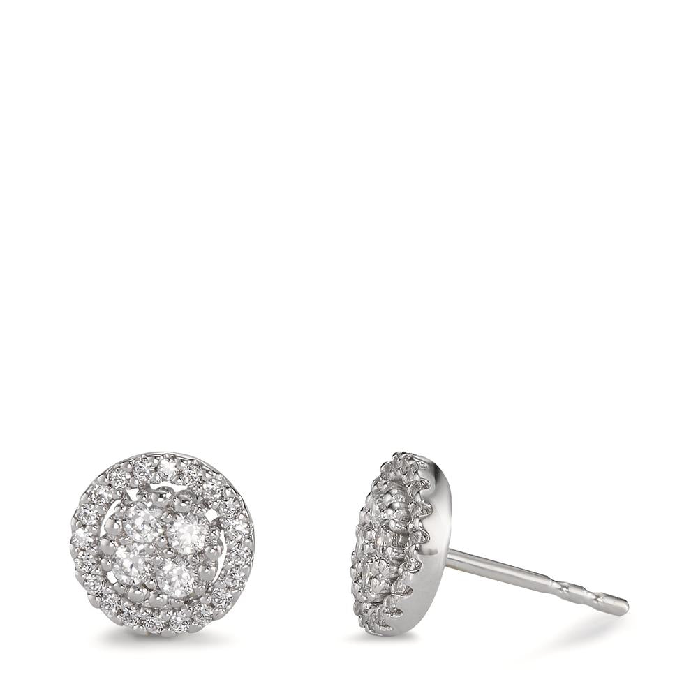 Clous d'oreilles Or blanc 9K Zircone 48 Pierres Ø7.5 mm