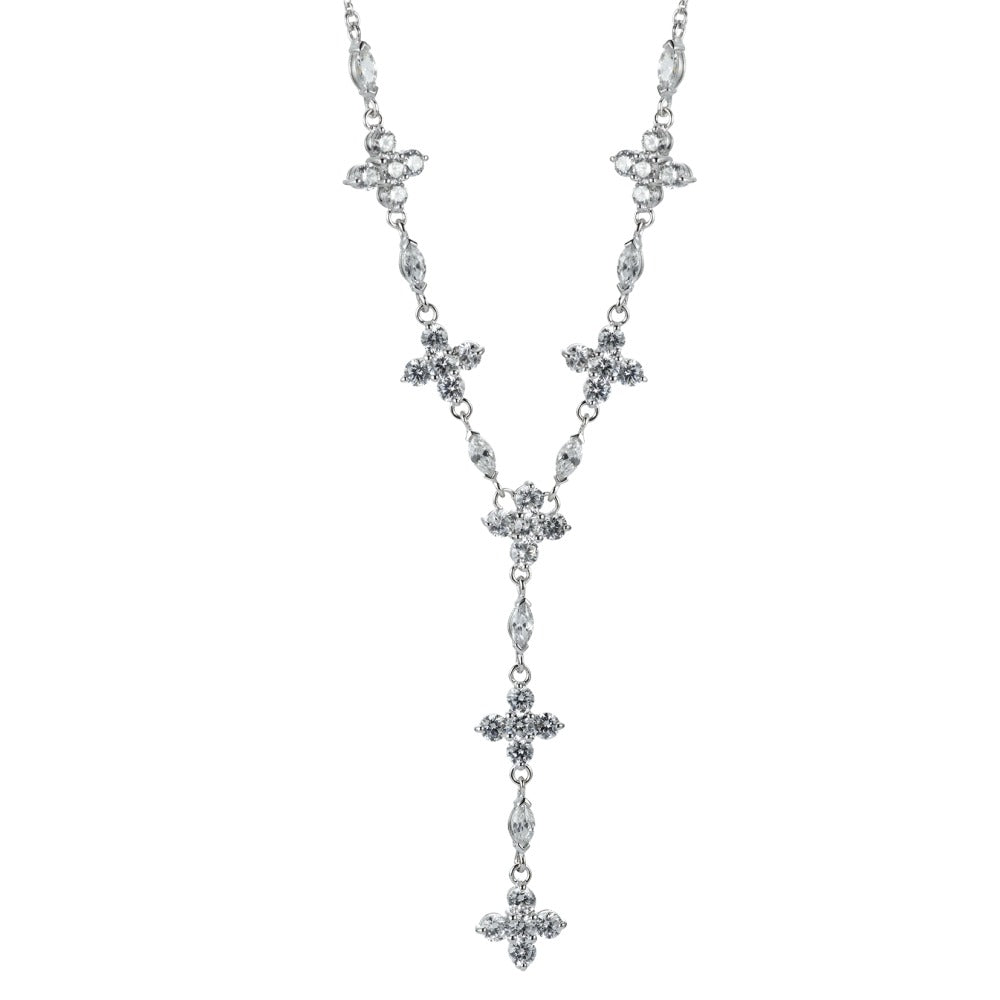 Collier pour femme en argent fin, orné de zircones scintillantes. Design élégant avec des motifs croisés, parfait pour sublimer vos tenues de soirée ou même au quotidien. Un bijou raffiné alliant brillance et sophistication pour toutes les occasions.