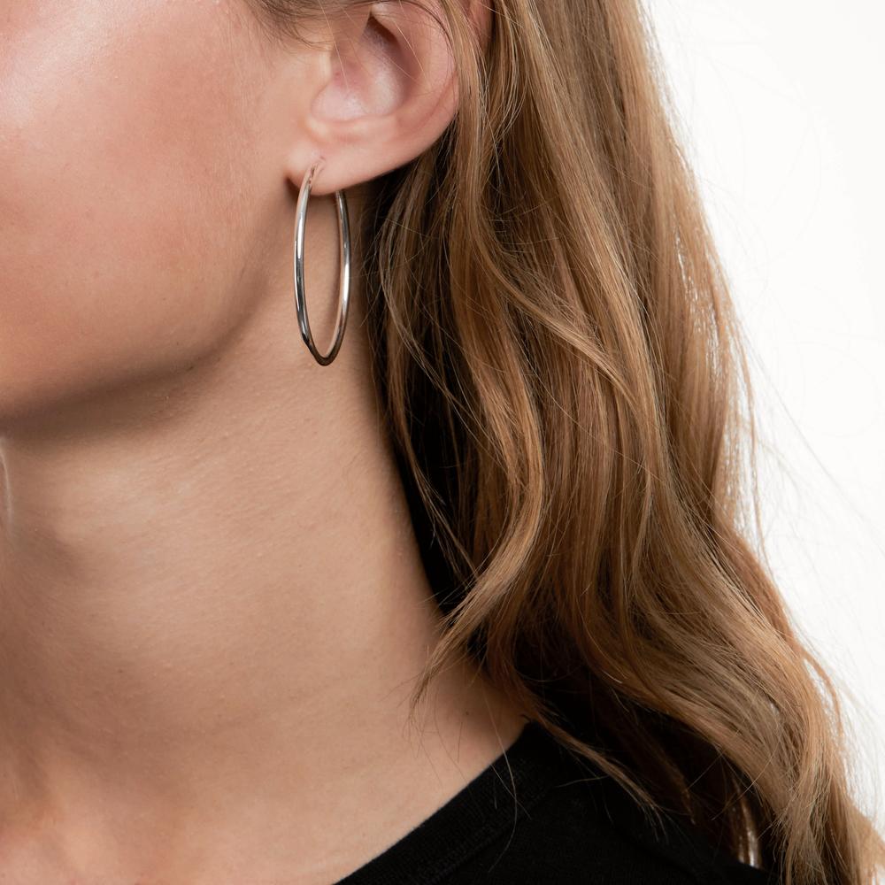 Boucles d'oreilles créoles pour femmes en argent. Leur design épuré et classique apporte une touche d'élégance et de modernité à toutes vos tenues. Légères et confortables à porter, elles sont parfaites pour un usage quotidien ou des occasions spéciales. Un essentiel intemporel.
