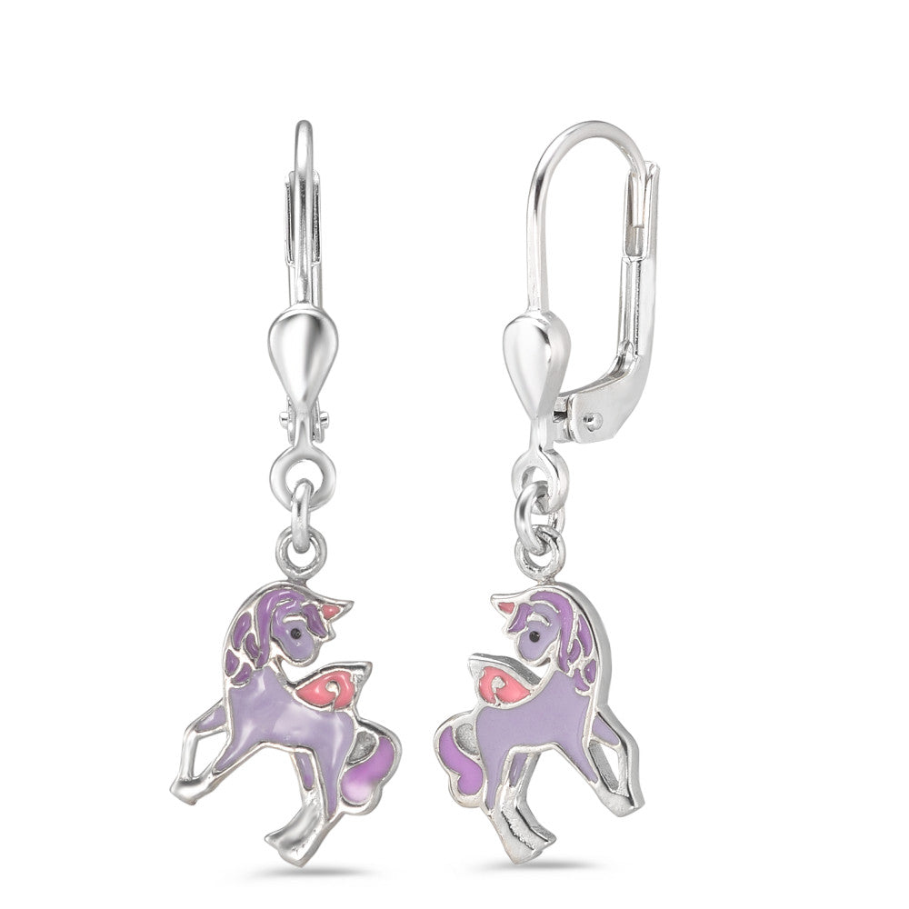 Boucles d'oreilles pour filles en argent, ornées d'un pendentif licorne coloré. Un bijou adorable et léger, parfait pour apporter une touche magique et féerique à toutes les tenues de votre enfant. Fermoir sécurisé et design charmant.