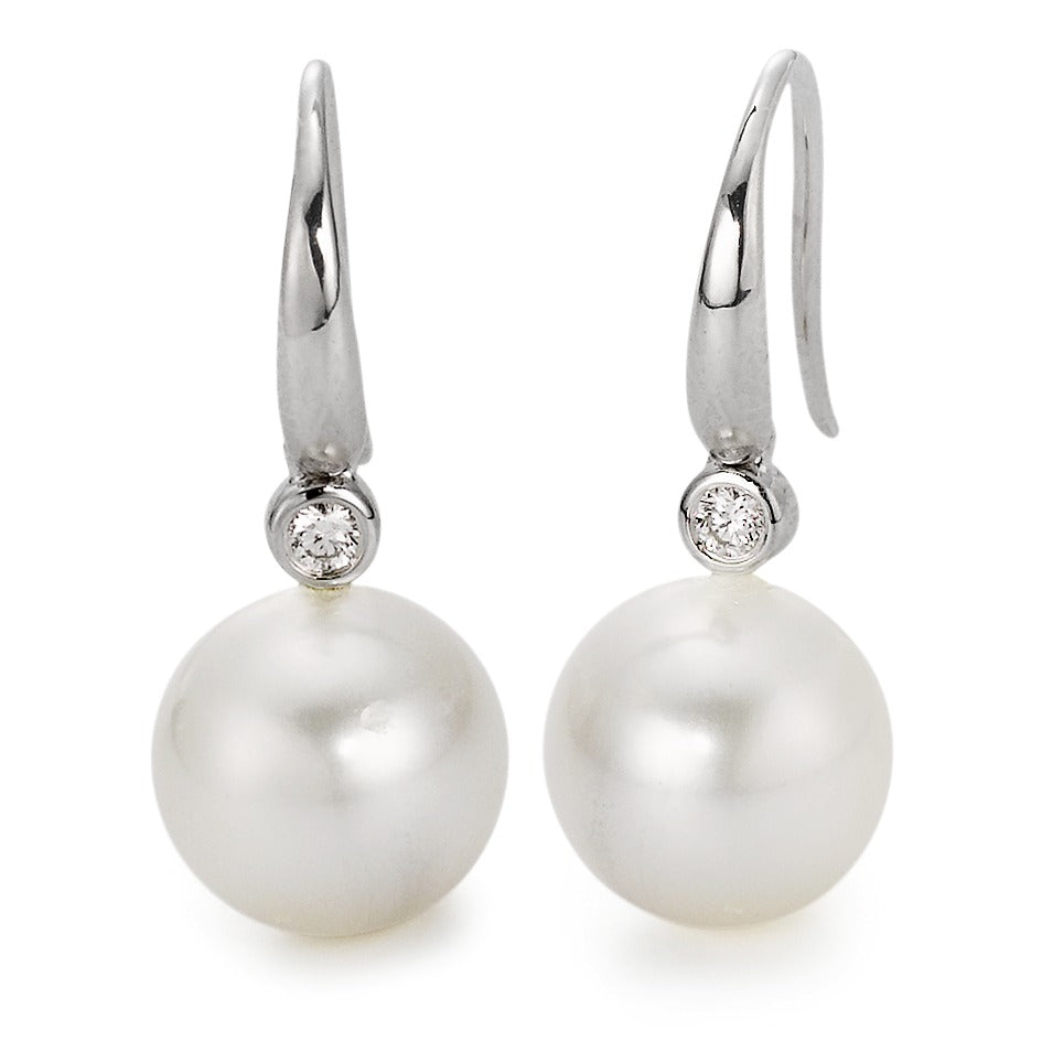 Pendant d'oreilles Or blanc 18K Diamant blanc, 0.09 ct, 2 Pierres, si perle d'eau douce blanc, 2 Perles, 10 mm